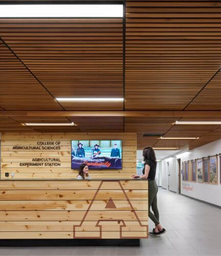 This design-build project proposed not only a major renovation of the interior space to meet evolving programmatic needs but also two significant additions to allow for growth and provided a signature building for the College of Agricultural Sciences. Complete renovation of the existing building including most of the infrastructure systems occurred and a 15,000-sf addition was added to the south side and a 31,000-sf addition on the north side which is a new signature entry.