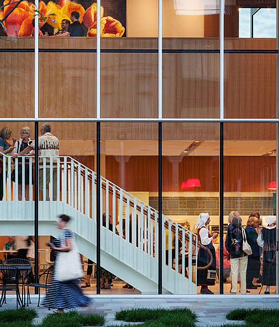 The campus expansion project includes construction of the new Nelson Cultural Center and renovations to the historic Turnblad mansion. The 34,000 sf Nelson Cultural Center features an art gallery, large studio and crafts workshop, and flexible event and office space. A 10,000 sf renovation of the 1908 Turnblad Mansion – which has housed the Institute for more than 80 years – creates more public gathering and classroom space and provides grounds for community festivals. In addition to various site improvements, construction also included a walkway and a stair/elevator tower connecting the new facility with the Turnblad mansion. This project achieved (LEED®) Gold certification. The Cultural Center will also features several sustainable elements, including a geothermal system, green roof, water reclamation system, and various sustainable building materials.