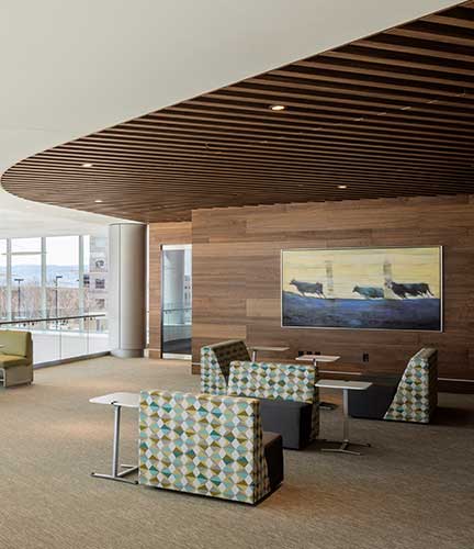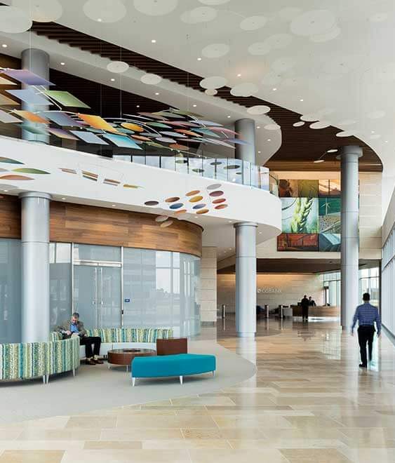 The CoBank Center is a Class A, build-to-suit office complex, located in Greenwood Village, Colorado. This 296,000 sf, 11-story office building has an attached 6-level precast parking structure to accommodate 950 cars. AP worked with longtime design partners, Davis Partnership, to ensure the building represented an optimal blend of innovative design and long-term operational performance. The breathtaking interior was designed by RNL Design.