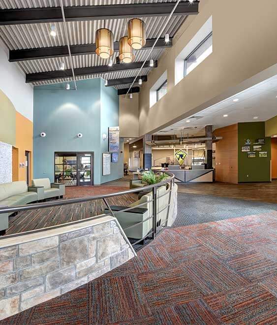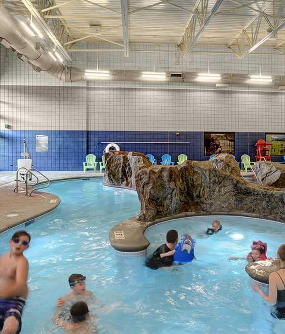 With an outdated aquatic center used for the local school’s swim meets, the project required transforming the 10,900-sf center into a functional community and recreation center. By adding on an addition five times larger than the existing aquatic center, the finished facility became a multi-generational space, offering diversified fitness, recreation, social and educational opportunities.