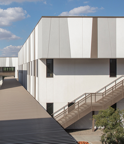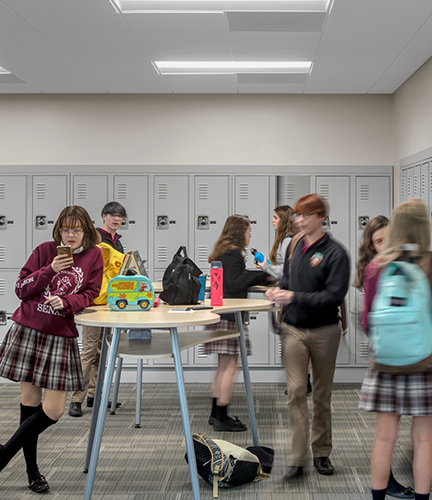 The ground-up, K-12 project for Great Hearts Academies includes a K-6 classroom building, 7-12 classroom building, administration area and a “Gymnatorium” with wood basketball floor, weight room and locker rooms. The school has a full football field with sports lighting and teacher and student parking.