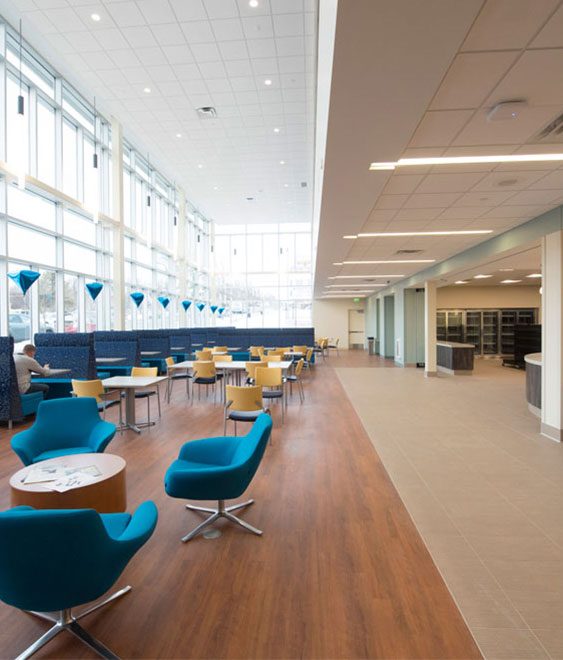 The Metropolitan State University Student Center provides students a unique set of services and spaces that did not previously exist on the St. Paul campus. The new amenities include an informal lounge/study space, café/grille, coffee and dining venues, a flexible programming space for events, a workout room and a student involvement suite.