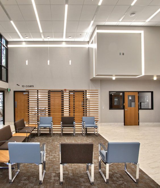 The Mountrail County Courthouse expansion included a two-story addition to the existing jail and historic courthouse. The addition consisted of 22 jail cells used classify inmates based on gender, criminal history, behavior and special needs. The project also included a vehicle sally-port, intake/release, master control, 911 emergency dispatch center, laundry, food service, recreation, jury courtroom, emergency operations center, fully functional sheriff’s department, medical examination, state attorneys department and clerk of courts. The new law enforcement center included the sheriff’s department, emergency operations center dispatch, jail administration, evidence and other support spaces. Courtrooms are located on the second floor, providing separation from the public and jail population.