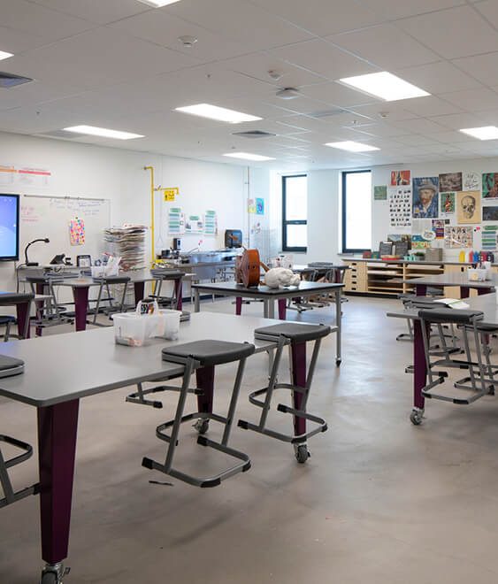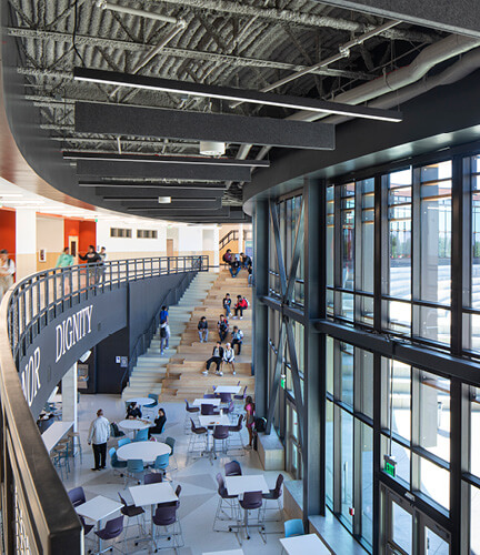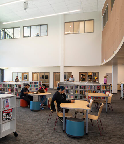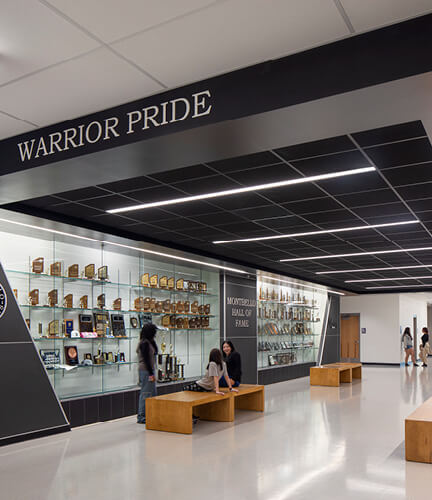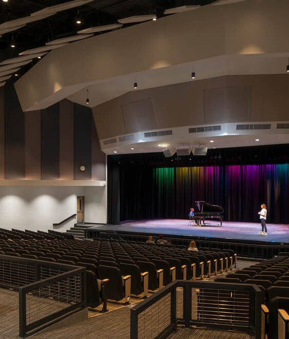AP provided preconstruction and construction services for this comprehensive high school on an existing 30-acre site. The new building includes a 1:1 replacement of program spaces, featuring an auditorium and a regional competition swimming pool. Due to potential site constraints, the existing school was demolished in phases as new construction was completed. The existing building remained operational throughout construction and was demolished upon completion of the new 277,629-square-foot facility.